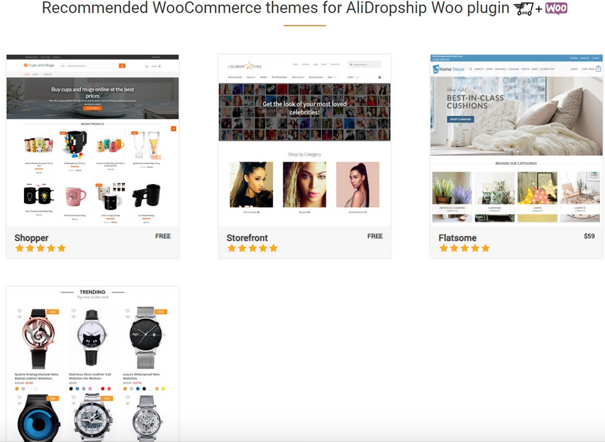 Install WooCommerce plugin to the site along with the AliDropship Woo Plugin. Once you’re done, install a WooCommerce-based theme from the available choices and start importing dropshipping products from AliExpress.