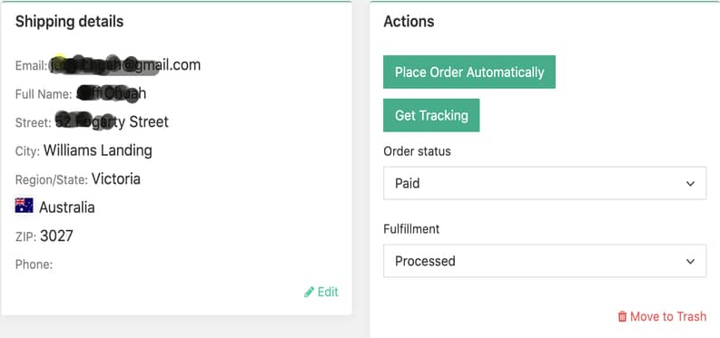 AliDropship Plugin is the real deal as it not only sabes you time but also energy and lots of stress that comes with doing it manually. Lastly, once the dropshipping products are finally shipped, you’ll notice the orange dot turns to green. The processing button will also change to green and shipped to show that the process is complete.