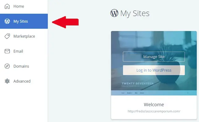 Use the login other option to set up a WordPress account. Once you are logged in, there’s a “my site” option on the lest-hand side of the screen with a procedure of setting up the WordPress site on the domain name.