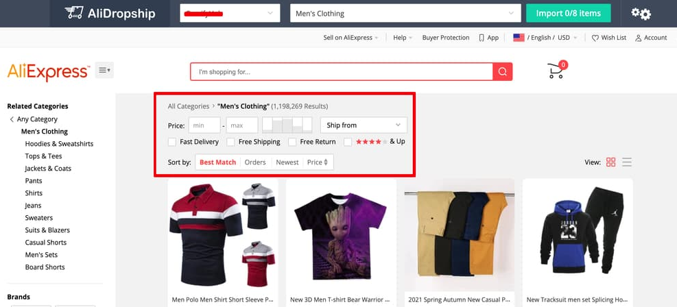 You can add dropshipping products directly from AliExpress by clicking on the “Use Direct Import” button. AliExpress will redirect you to a new tab with a click of a button. The AliDropship importing section needs to stay open at all times when importing products, be sure not to close it.
