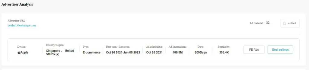 PiPiads gives you a detailed analysis of the ads as shown in the image above.